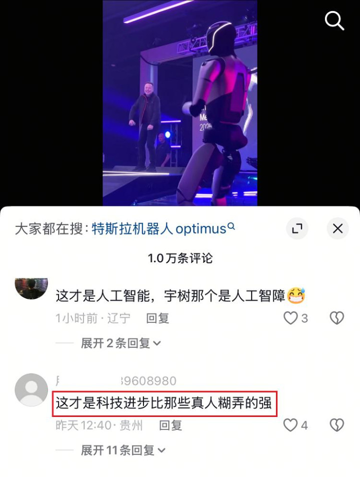 本来两家不同公司的同类机器人做个对比,也挺好。但是在两条视频下方的评论区,呈现出两种截然不同的风格。